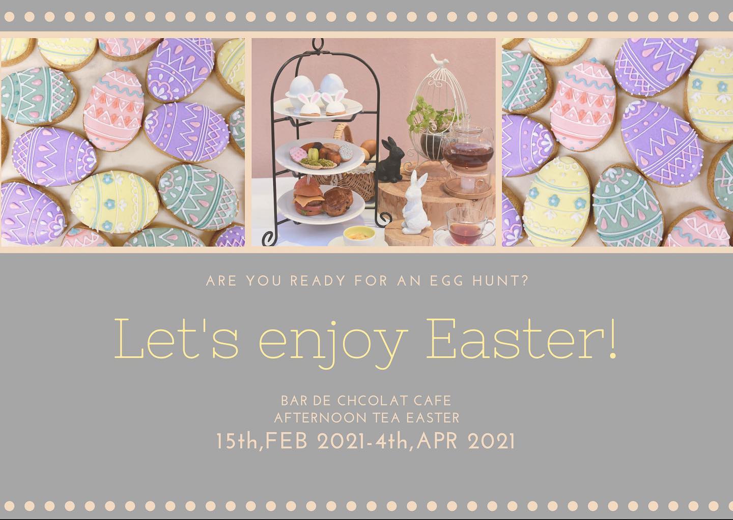 【アフタヌーンティーリニューアル】 春ですね、、春といえば卵を探しに行く季節です。日本では、イースターエッグ?うさぎ?の様な可愛らしいイベントの日と思われることが多いです では、どんな日なの? キリスト教圏では クリスマス【誕生日】よりも、イースター【復活】したこの日の方が大切 という位大事な日の様で、家族でお祝いする日の様です なんで?たまご?うさぎ?! たまごは、生命の【誕生】を意味し うさぎは、子供をたくさん産む為【繁栄や豊穣】などのシンボルに うさぎは、イースターエッグやお菓子を運んできてくれる伝説もあるみたいです 素敵なイースターをお過ごしください