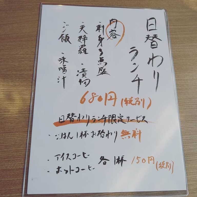 おはようございます。-本日の日替わりランチはお刺身と天麩羅でございま 2021年1月29日Full resolution (950 × 951) ← Previous Next → おはようございます。 本日の日替わりランチはお刺身と天麩羅でございます。 本日もご来店を心よりお待ちしております。