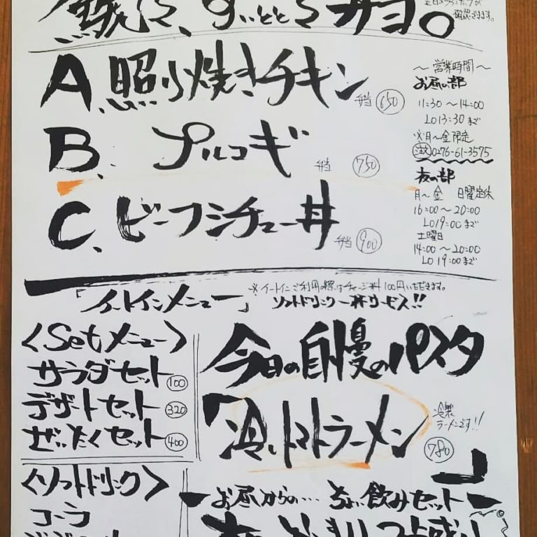ご注文 お受け致します。 …と言う事で明日の お弁当ラインナップです! 好評につき同じ ラインナップにて 販売させて頂きます 照り焼きチキン弁当 650 プルコギ弁当 750 ビーフシチュー丼弁当 900 の三種類になっております! ご注文12日9時までに お願い致します…m(_ _)m 【すいとと】 11:30~14:00まで お持ち帰りOK!! イートインにて店内での お食事も可能です。 TEL0276-61-3575 店内限定 『冷やしトマトラーメン』 始めました!v(・∀・*) …オススメです♪ 【鯱家】 12:00~13:00の間に 鯱家店舗にてご注文の お客様のみ受け渡し させて頂きます。 前もってのご注文お待ち しておりますm(_ _)m TEL0276-51-5306 ご予約両店から 可能ですのでお電話 繋がらない場合は 別店舗にお手数ですが 連絡お願い致します。 インスタメッセージでも お受け致します♪ ・ ・