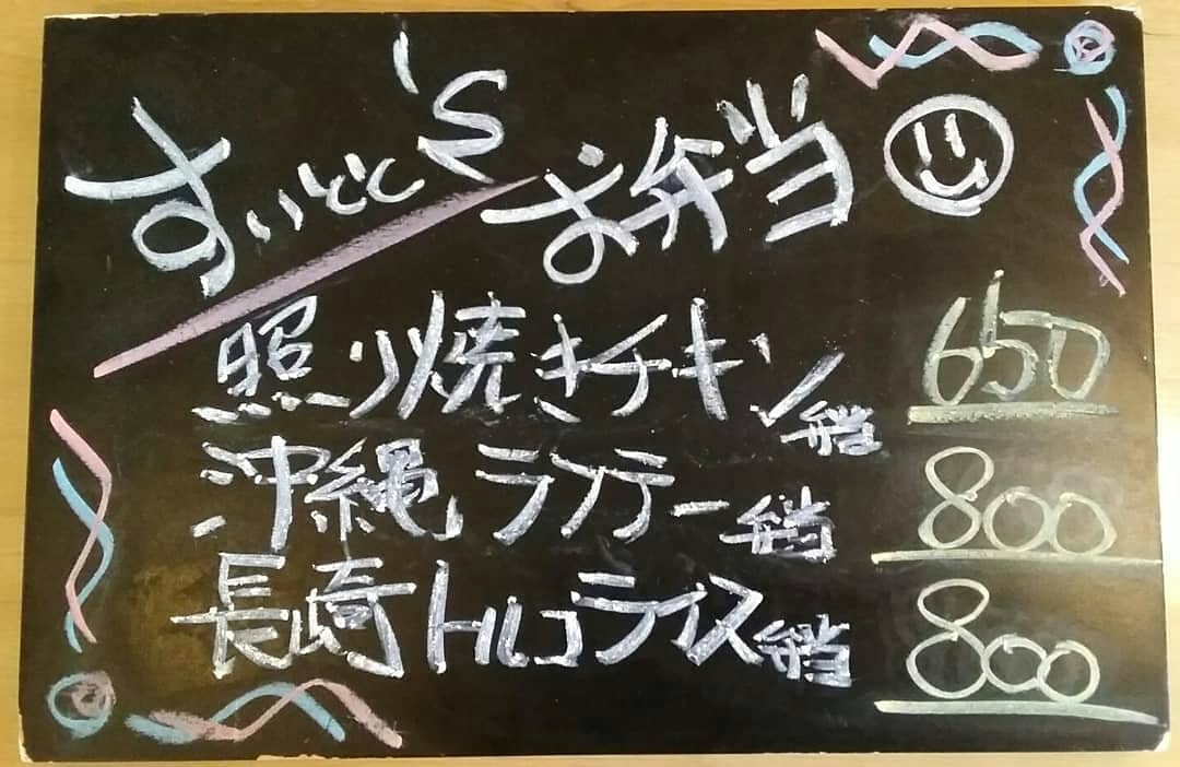 ご注文 お受け致します。 …と言う事で明日の お弁当ラインナップです! 照り焼きチキン弁当 650 沖縄ラフテー弁当 800 長崎トルコライス弁当 800 の三種類になっております! ご注文29日9時までに お願い致します…m(_ _)m 【すいとと】 11:30~14:00まで お持ち帰りOK!! イートインにて店内での お食事も可能です。 TEL0276-61-3575 店内限定 『ゴーヤのペペロンチーノ』 …もオススメです♪ 【鯱家】 12:00~13:00の間に 鯱家店舗にてご注文の お客様のみ受け渡し させて頂きます。 前もってのご注文お待ち しておりますm(_ _)m TEL0276-51-5306 ご予約両店から 可能ですのでお電話 繋がらない場合は 別店舗にお手数ですが 連絡お願い致します。 インスタメッセージでも お受け致します♪ ・ ・