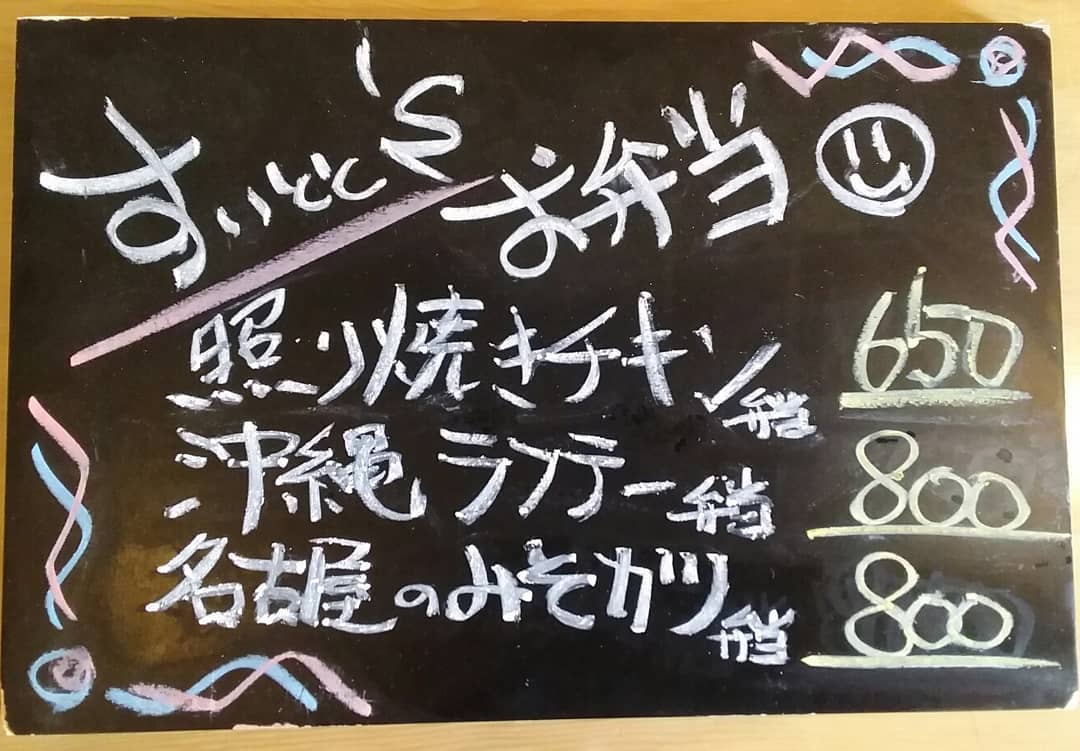 ご注文 お受け致します。 …と言う事で明日の お弁当ラインナップです! 照り焼きチキン弁当 650 沖縄ラフテー弁当 800 名古屋のみそカツ弁当 800 の三種類になっております! ご注文28日9時までに お願い致します…m(_ _)m 【すいとと】 11:30~14:00まで お持ち帰りOK!! イートインにて店内での お食事も可能です。 TEL0276-61-3575 店内限定 『ゴーヤのペペロンチーノ』 …もオススメです♪ 【鯱家】 12:00~13:00の間に 鯱家店舗にてご注文の お客様のみ受け渡し させて頂きます。 前もってのご注文お待ち しておりますm(_ _)m TEL0276-51-5306 ご予約両店から 可能ですのでお電話 繋がらない場合は 別店舗にお手数ですが 連絡お願い致します。 インスタメッセージでも お受け致します♪ ・ ・