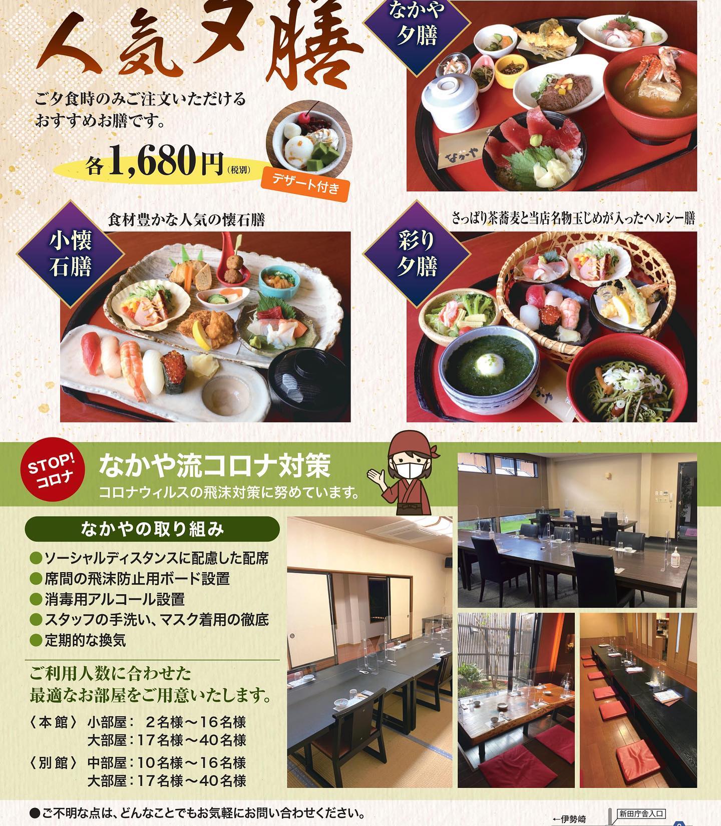冬の会食プランのチラシができましたので紹介させていだきます。-今回は-4 2020年11月26日Full resolution (1440 × 1650) ← Previous Next → 冬の会食プランのチラシができましたので紹介させていだきます。 今回は5種類の小鍋から1種類を選んでいただける形です。(グループ全員統一となります) 海鮮鍋、肉鍋があり味もそれぞれ違います。 裏面は今回初となる、当店厳選年越し用海鮮詰め合わせの販売をします。 ご注文の際はお電話、FAXでも受け賜ります。 締め切りがありますので、ご注意下さい。 こんなご時世ではありますが、お気軽に足を運んで下さい。