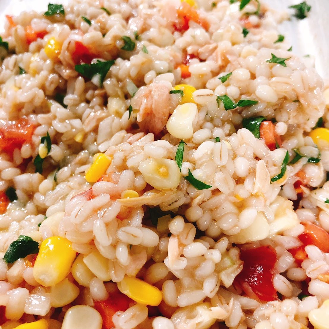 大麦・ツナ・とうもろこしのサラダ-ぷりぷりの大麦とツナの旨味、とうも 2020年12月18日Full resolution (1107 × 1107) ← Previous Next → 大麦・ツナ・とうもろこしのサラダ ぷりぷりの大麦とツナの旨味、とうもろこしの優しい甘さ、トマトとヴィネガーの酸味をイタリア産のとっても美味しいオリーブオイルがしっかりとまとめています 小皿や前菜の盛り合わせに入ってまーす 明日もよろしくお願いいたします🏻