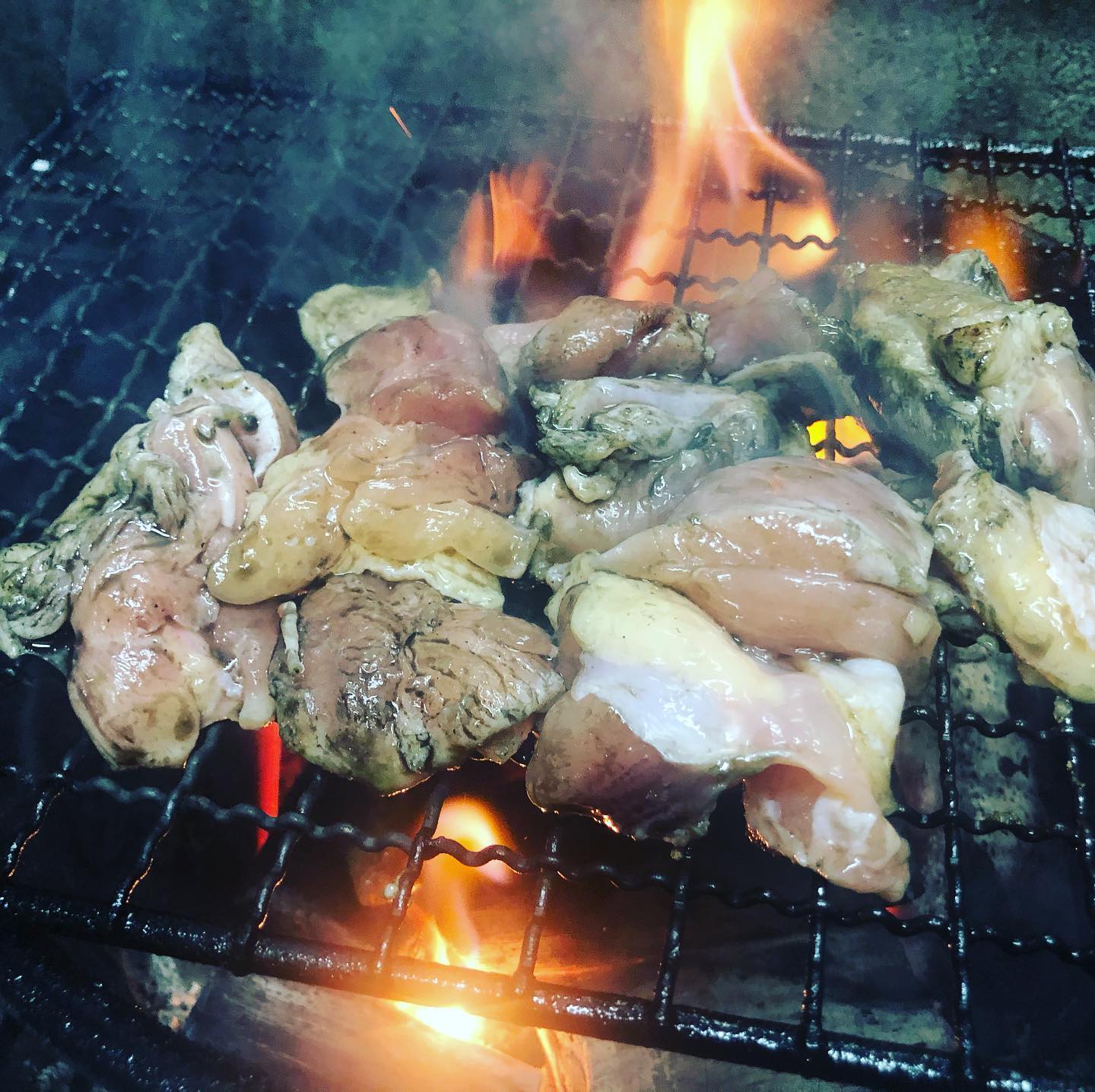 宮崎風じとっこ焼き!-炭に油を垂らして火をつけながら焼く豪快な焼き鶏 2020年10月12日Full resolution (1440 × 1436) ← Previous Next → 宮崎風じとっこ焼き! 炭に油を垂らして火をつけながら焼く豪快な焼き鶏! 炭の香りが良くお酒に会います… この間炙りすぎて、前髪少し燃えましたw