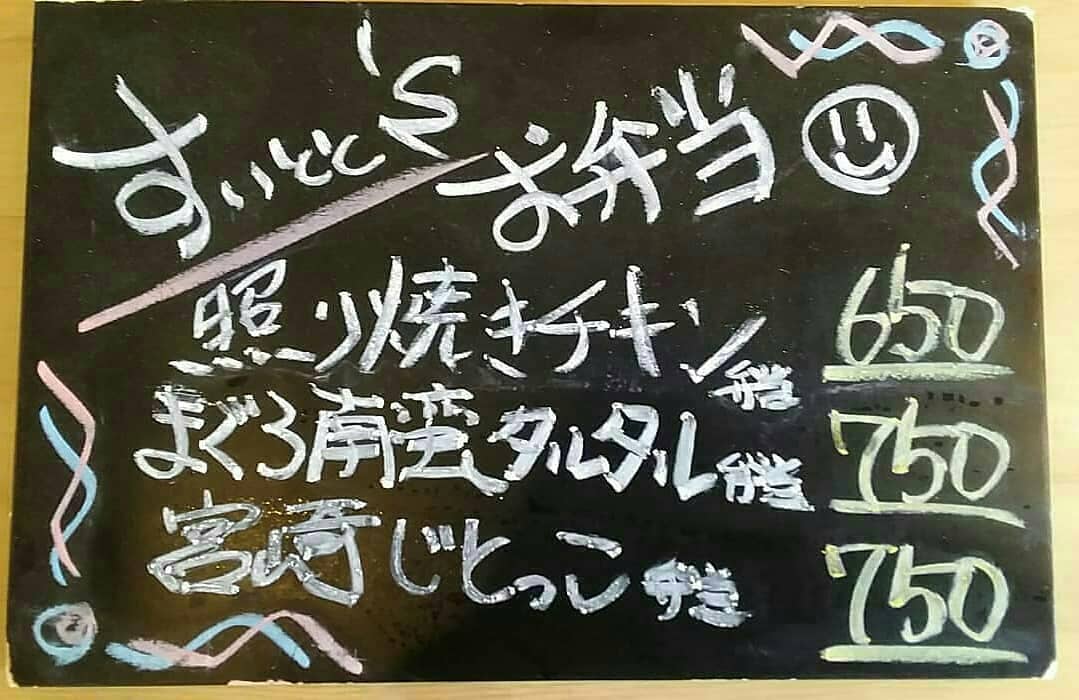 明日4日(木)を もちましてお弁当の 販売を終了とさせて いただきますm(_ _)m 短い期間でしたが ご利用いただお客様 ありがとうございました。 5日(金)より夜の営業が 通常通りとなりますので よろしくお願い致します。 からの…ご注文 お受け致します。 …と言う事で明日の お弁当ラインナップです! 照り焼きチキン弁当 650 まぐろ南蛮タルタル弁当 750 宮崎じとっこ弁当 750 の三種類になっております! ご注文4日9時までに お願い致します…m(_ _)m 【すいとと】 11:30~14:00まで お持ち帰りOK!! イートインにて店内での お食事も可能です。 TEL0276-61-3575 店内限定 『ゴーヤのペペロンチーノ』 …もオススメです♪ 【鯱家】 12:00~13:00の間に 鯱家店舗にてご注文の お客様のみ受け渡し させて頂きます。 前もってのご注文お待ち しておりますm(_ _)m TEL0276-51-5306 ご予約両店から 可能ですのでお電話 繋がらない場合は 別店舗にお手数ですが 連絡お願い致します。 インスタメッセージでも お受け致します♪ ・ ・