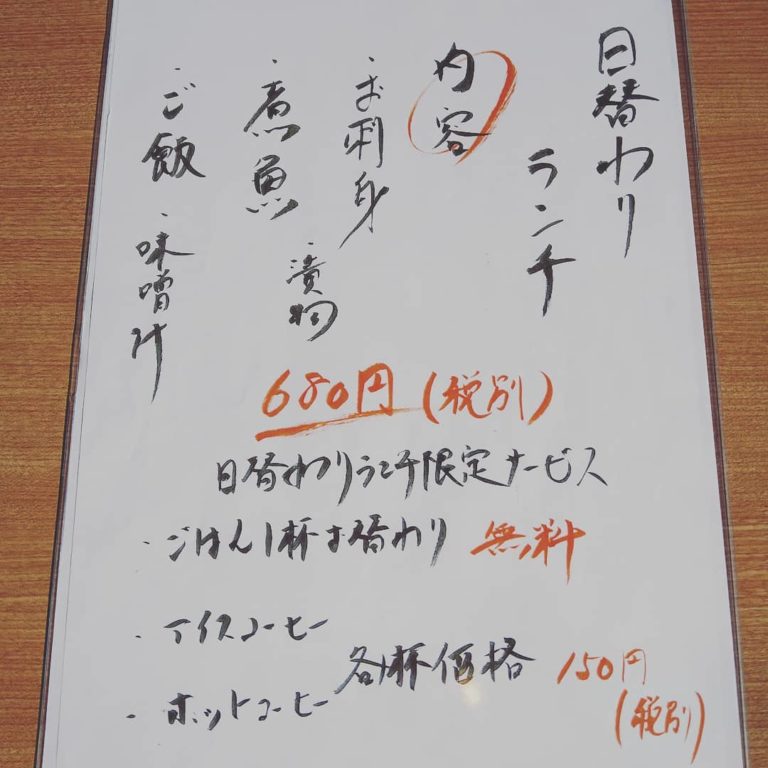 本日の日替わりランチはお刺身と煮魚でございます。 煮魚は平政になります。 ご来店を心よりお待ちしております。