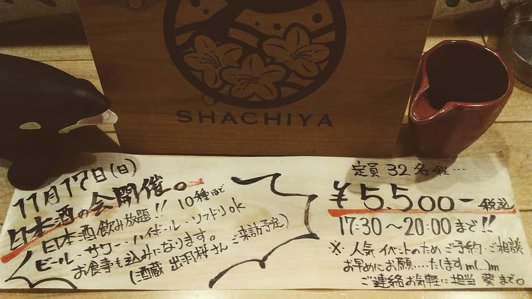 1号店の鯱家のイベント告知です!-1117日に日本酒の会開催いたします-詳細 2020年10月23日Full resolution (1080 × 608) ← Previous Next → 1号店の鯱家のイベント告知です! 11/17(日)に[日本酒の会]開催いたします 詳細は画像にありますのでご覧ください 定員に限りがありますので参加希望される方はお早めのご連絡お願い致します!