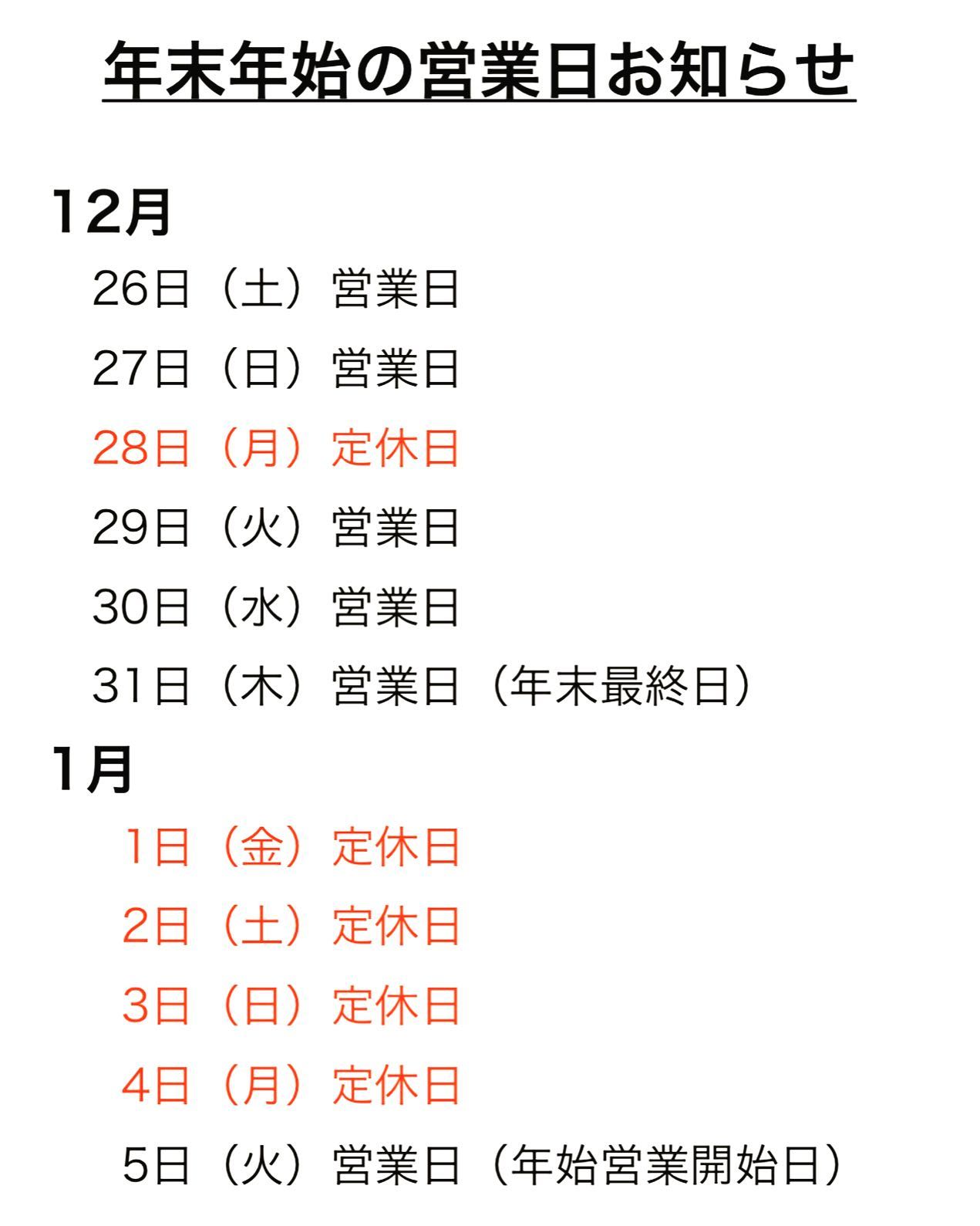 いつもありがとうございます♪ 年末年始の営業のご案内になります。 店内、安心してご飲食できるよう お席の間隔を空けて営業しております