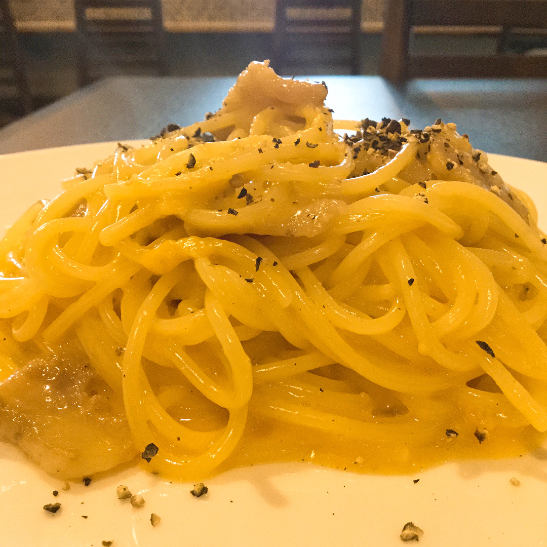 カルボナーラ 自家製のグアンチャーレを使ったローマ風️ 生クリームは使わず、卵とチーズで和えています 粗く叩いた黒胡椒をかけてどうぞ トラットリア パラヴィーノ trattoria paravino パスタ pasta カルボナーラ ローマ風 自家製 グアンチャーレ 生クリーム不使用 carbonara romana guanciale オススメ 群馬 太田 イタリアン イタリア料理 cucinaitaliana
