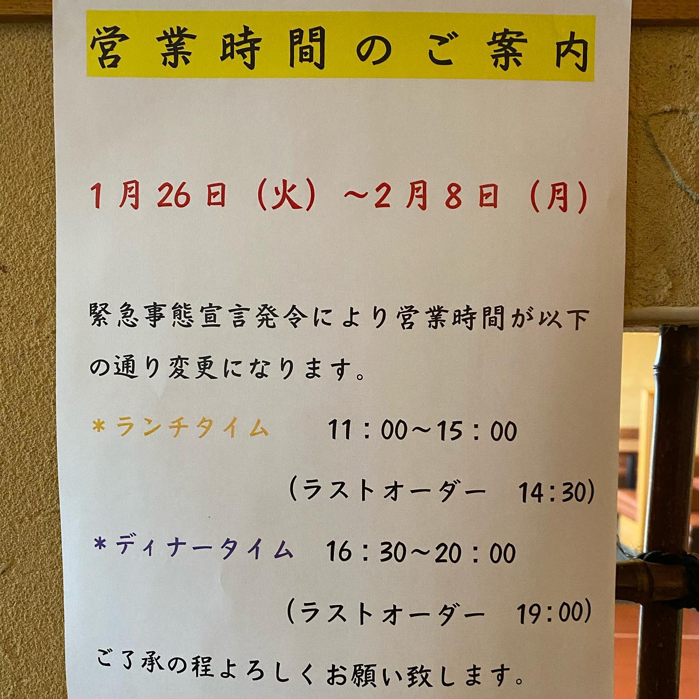 【お知らせ】 緊急事態宣言により、1月26日〜2月8日まで延期になり、営業時間が変更になります。 ご了承ください。 ・[昼] 11:00〜15:00(ラストオーダー14:30) ・[夜] 16:30〜20:00(ラストオーダー19:00) ※HPはインスタプロフィールのURLからご覧下さい