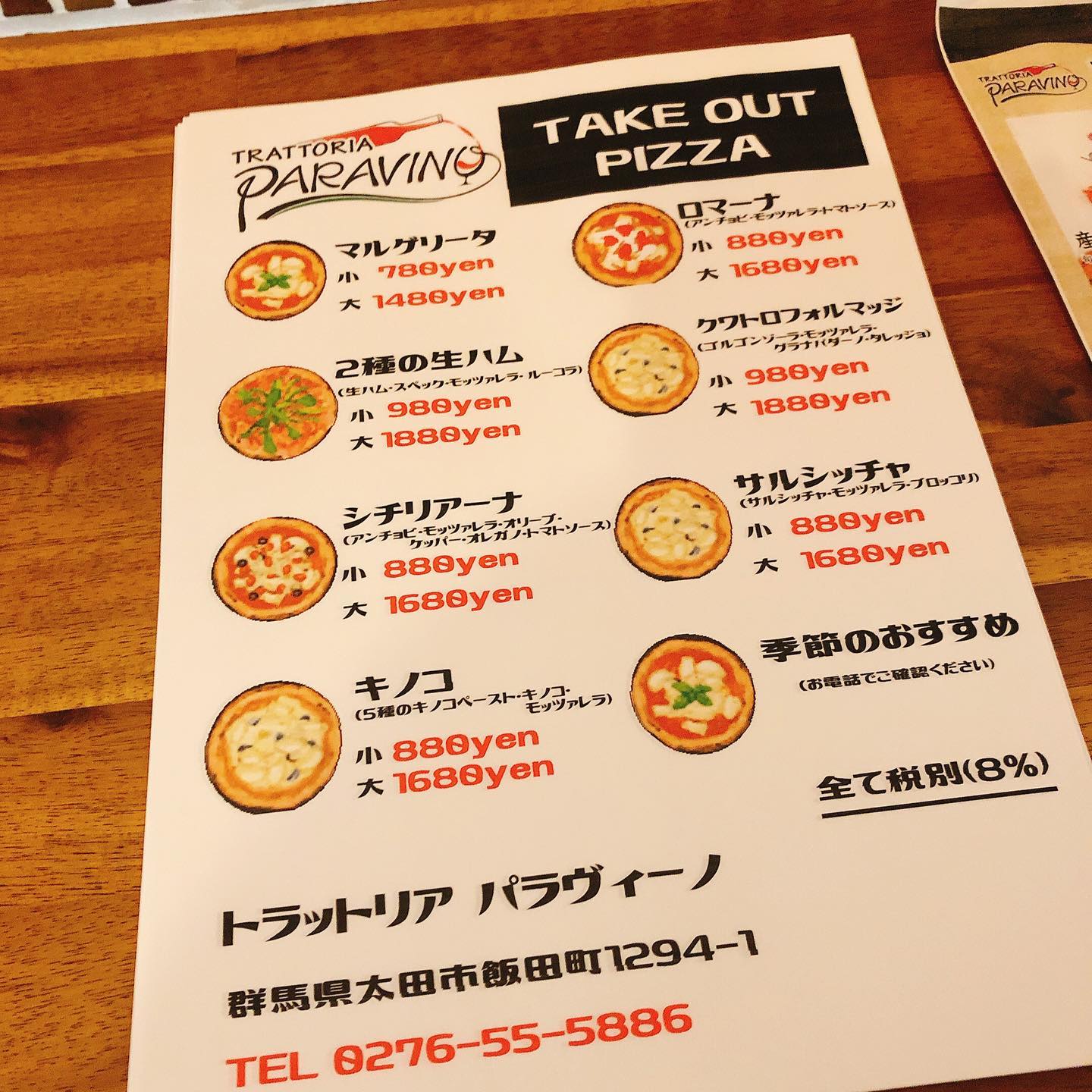 ピッツァのテイクアウトメニュー出来ました テイクアウトは軽減税率(8%)とキャッシュレス決済(5%還元)でお得です 本日も宜しくお願い致します️